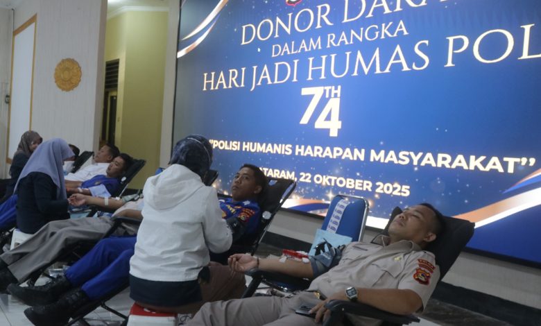 Mataram, Fokus NTB — Suasana hangat dan penuh semangat terasa di Gedung Sasana Dharma Polda Nusa Tenggara Barat (NTB), Selasa (22/10/2025) pagi. Ratusan orang, mulai dari anggota Polri, ASN, hingga wartawan, antre dengan tertib mengikuti kegiatan donor darah serentak, yang digelar Bidang Humas Polda NTB dalam rangka memperingati Hari Jadi Humas Polri ke-74.