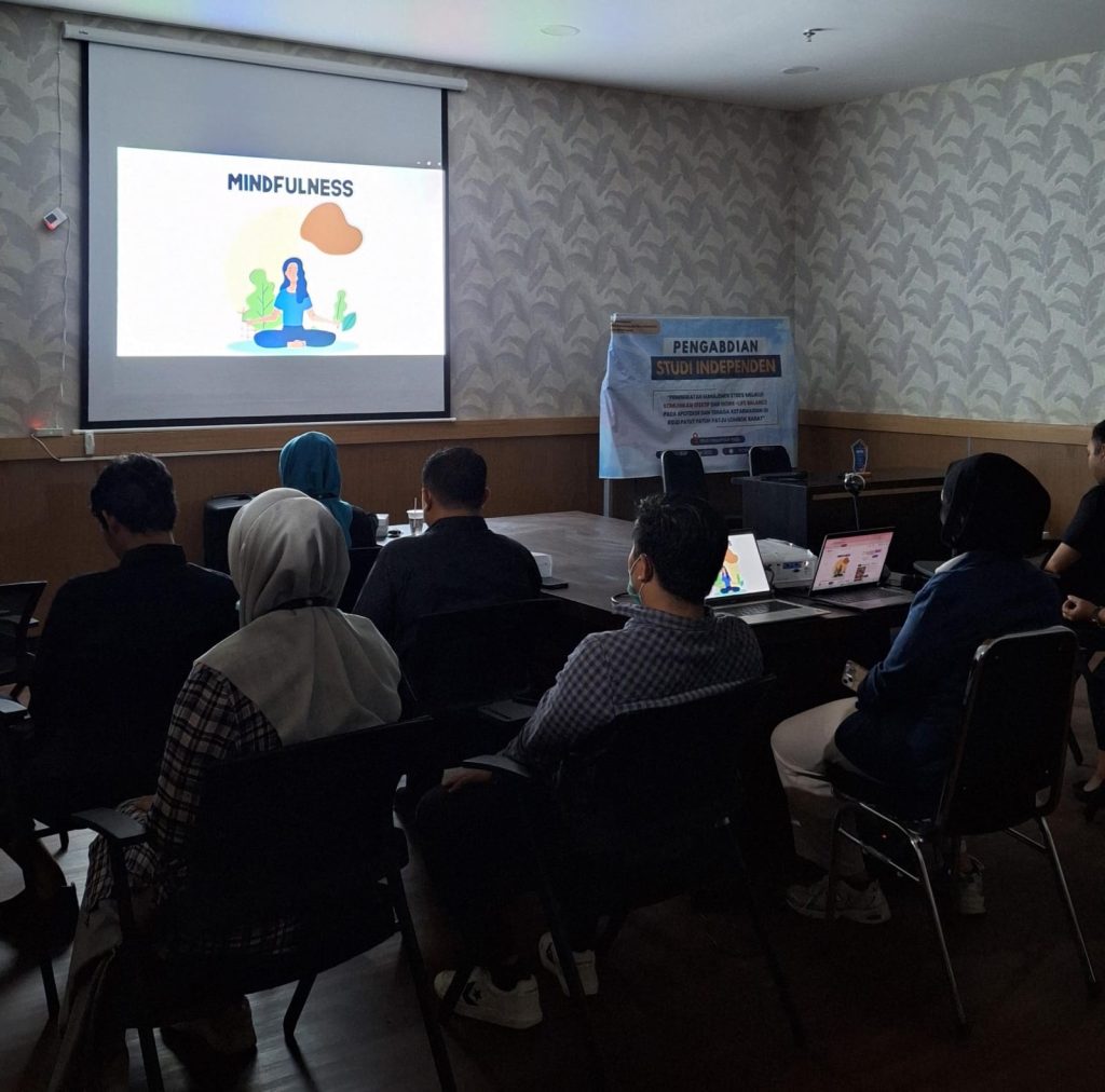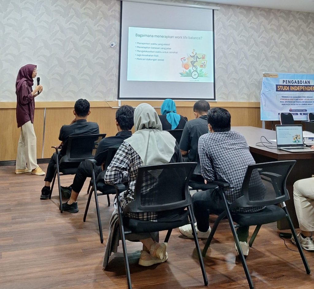Selanjutnya penyampaian materi edukasi yang membahas konsep stres kerja, faktor penyebab stres, peran komunikasi efektif dalam menurunkan tekanan kerja, serta pentingnya keseimbangan antara kehidupan kerja dan kehidupan pribadi.