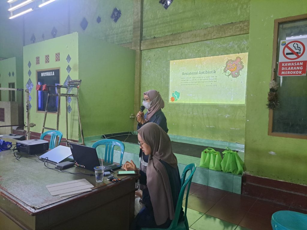 Selanjutnya, penyampaian materi terkait penggunaan antibiotik, seperti pengertian antibiotik, pengertian resistensi antibiotik, penyebab resistensi antibiotik, penyakit yang memerlukan dan tidak memerlukan antibiotik, dampak resistensi antibiotik, serta cara mencegah resistensi antibiotik.