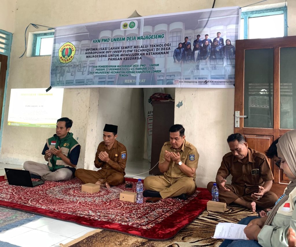 Kegiatan ini dilaksanakan di Mushola An-Nur RT 07 Dusun Wajageseng (20/1/2026) yang bertujuan untuk memberikan edukasi kepada masyarakat tentang pemanfaatan lahan terbatas secara produktif. Sistem hidroponik DFT (Deep Flow Technique) dipilih karena praktis, hemat air, serta mampu menghasilkan tanaman yang bersih dan sehat. Pada pelatihan ini, mahasiswa UNRAM menggunakan pakcoy sebagai salah satu contoh dalam budidaya hidroponik system DFT. Mahasiswa KKN UNRAM menghadirkan narasumber langsung dari UPT Pertanian Kopang, Bapak Rizki Hasmi, S.Tp, yang juga merupakan Penyuluh Lapangan Desa Wajageseng.